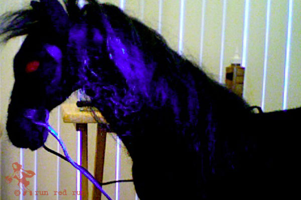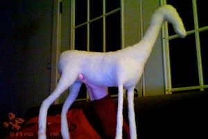 What’s a Headless Horseman without his horse? When I was felting the spooky Hessian I planned to make him a trusty steed to ride, but wasn’t sure if I could actually do it. The friend who designed the horseman for me decided I should handle designing the horse on my own. I was a bit nervous at first, but I was determined (and encouraged) to do it. So, here’s a shot of the finished horse (better photos in my next post) and below are some of the work in progress pictures. Not too bad for my first horse.