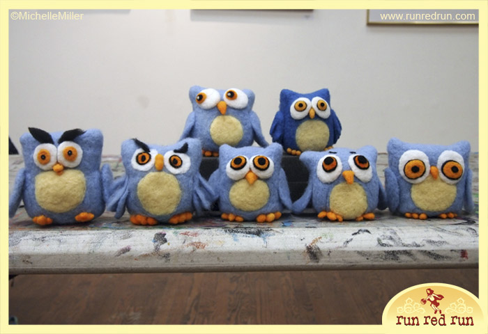 The other day, I taught a needle felting workshop at Sweetwater Center for the Arts. We had a good turnout of enthusiastic participants who learned the basics of needle felting in one whirlwind, three-hour class. For the workshop, I created a stylized owl and the group followed along, each felting their own owl.