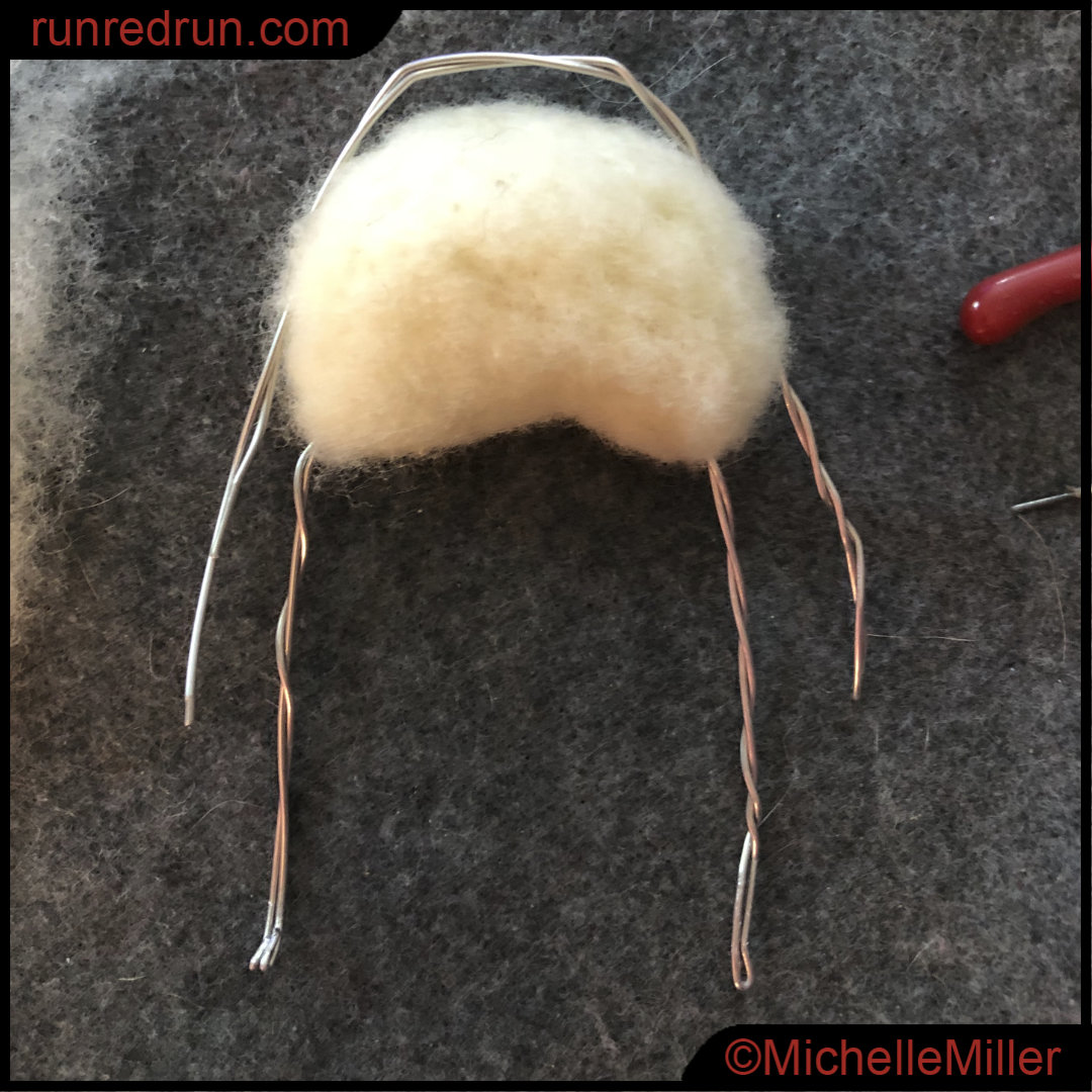 You could use long, hair-like tufts of wool for the whole figure, but that wool mats easily over time it’d look like something your cat coughed up. So, I built this little adventurer from some of the very last vestiges of my all-time favorite Norwegian C1 wool — it lays down nicely, keeps its shape, and presents a nice, soft texture that evokes a furry, muppety look.
