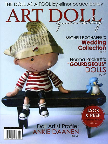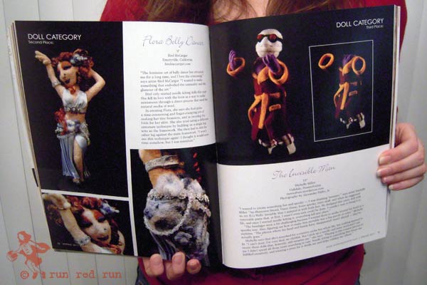 The moment has finally arrived. The Spring issue of Art Doll Quarterly has hit the stands and my award-winning Invisible Man is gracing the pages. There is a seven page spread featuring the winners of the LIVING FELT INTERNATIONAL FELTING CONTEST 2010. Everybody who won got their doll’s photo in the spread, and a chance to write a little something about themselves, their work and the contest.