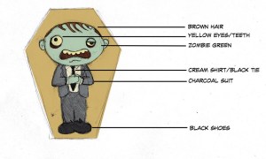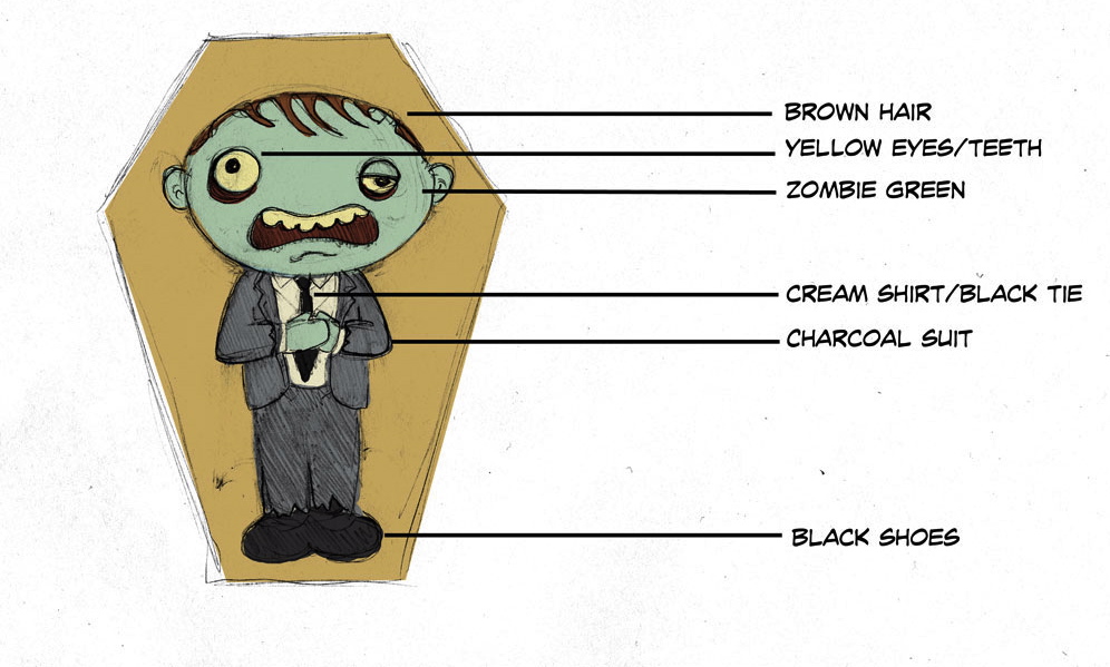 The illustration by Vince Dorse that I used to needle felt the Coffin Zombie